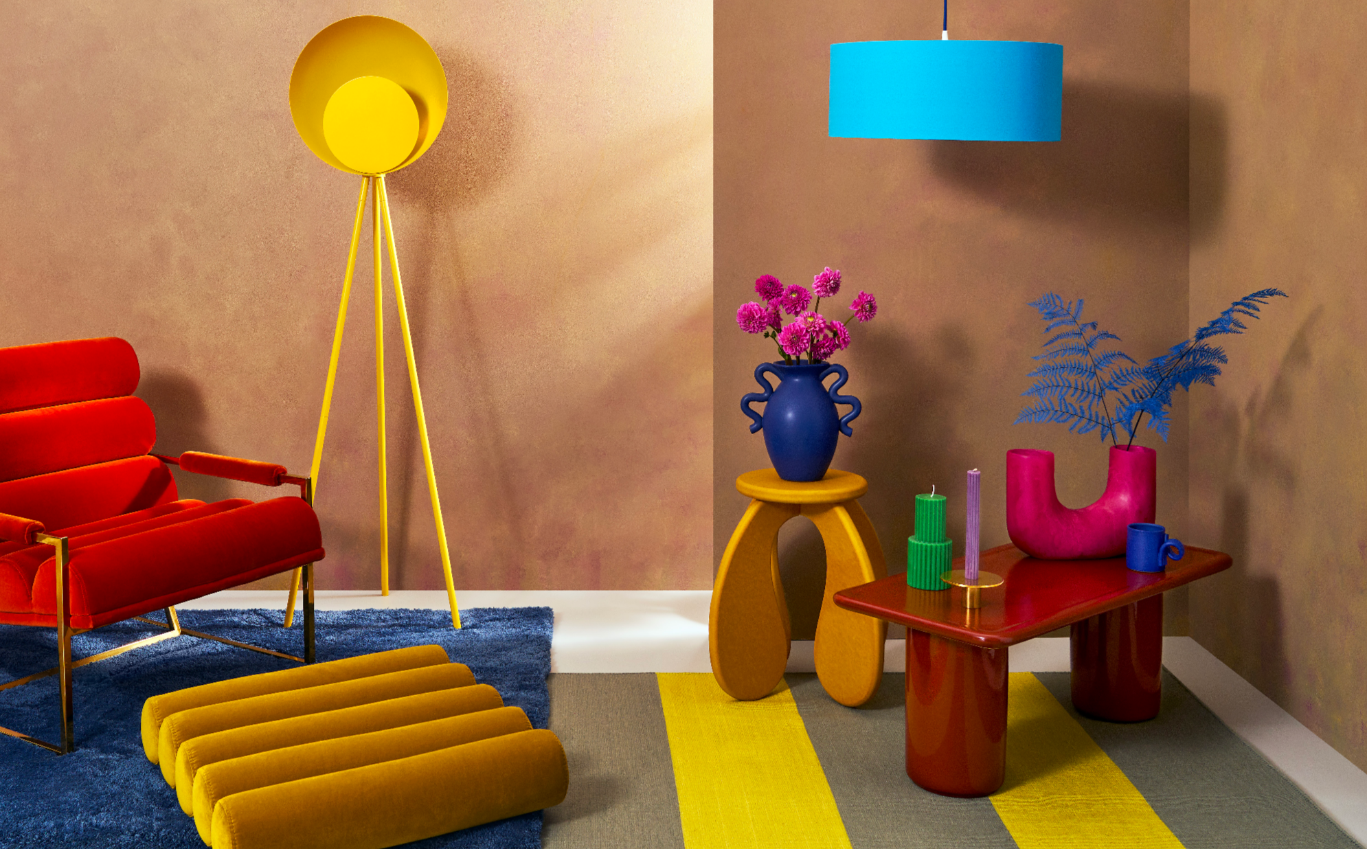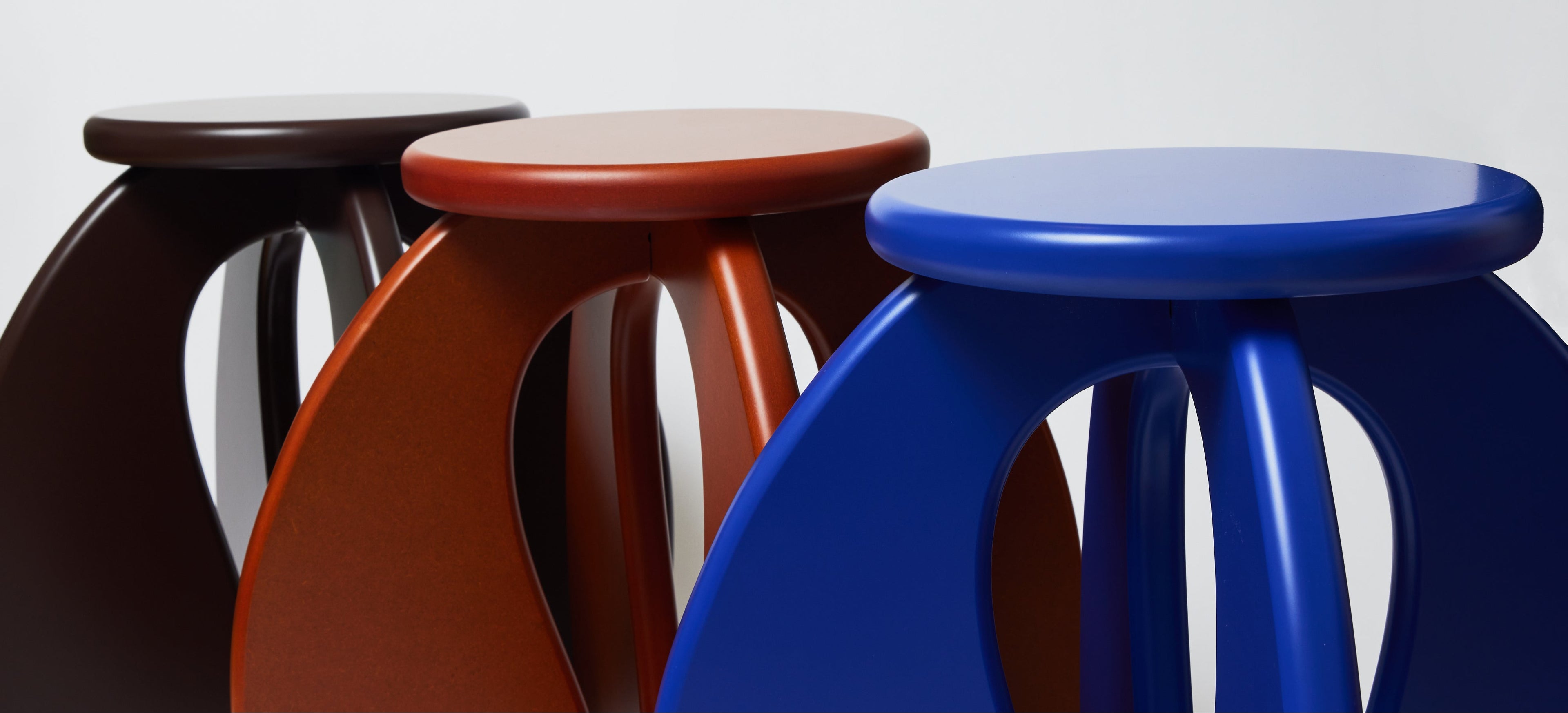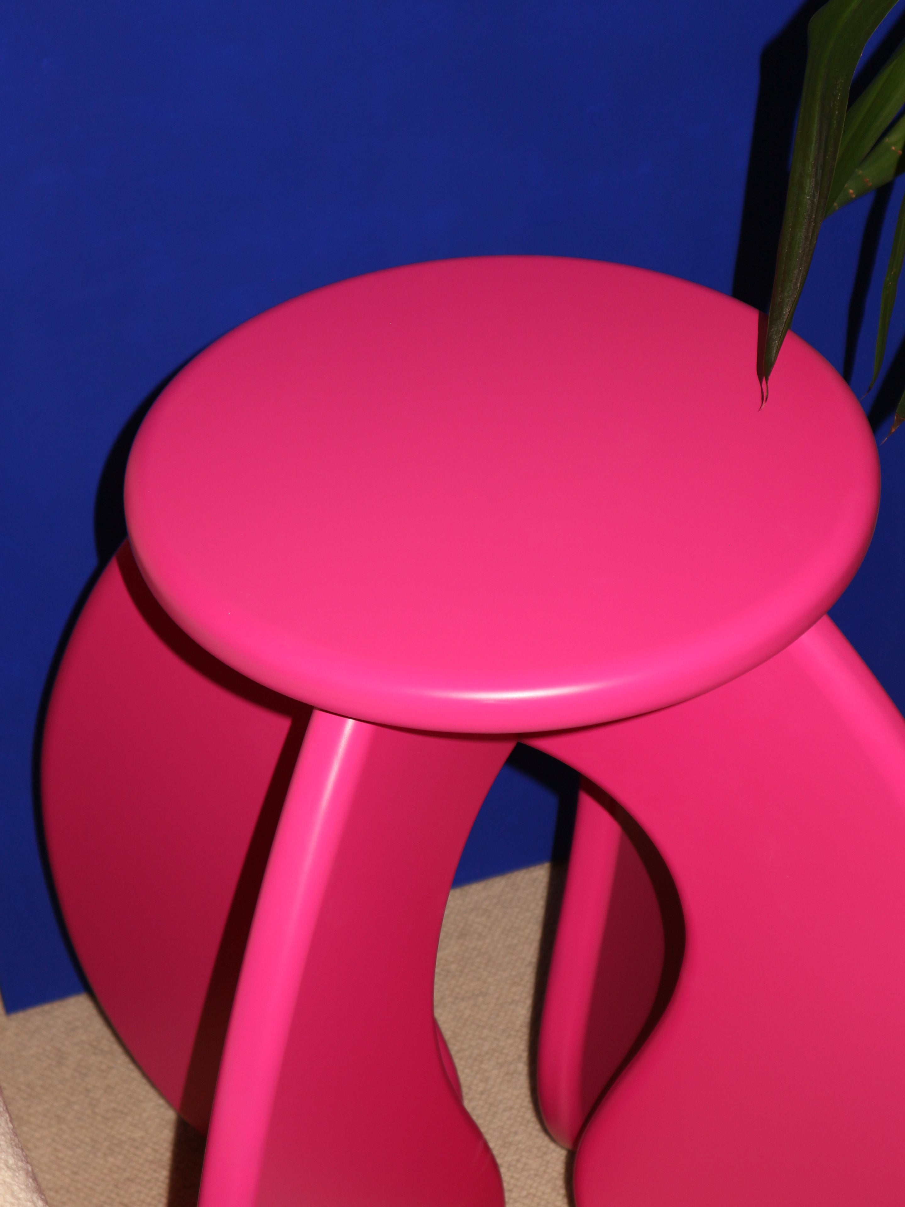 We do this by using ordinary materials and reimagine them into colourful, sculptural and otherworldly shapes, referencing nostalgic cartoons and retrofuturistic aesthetics.